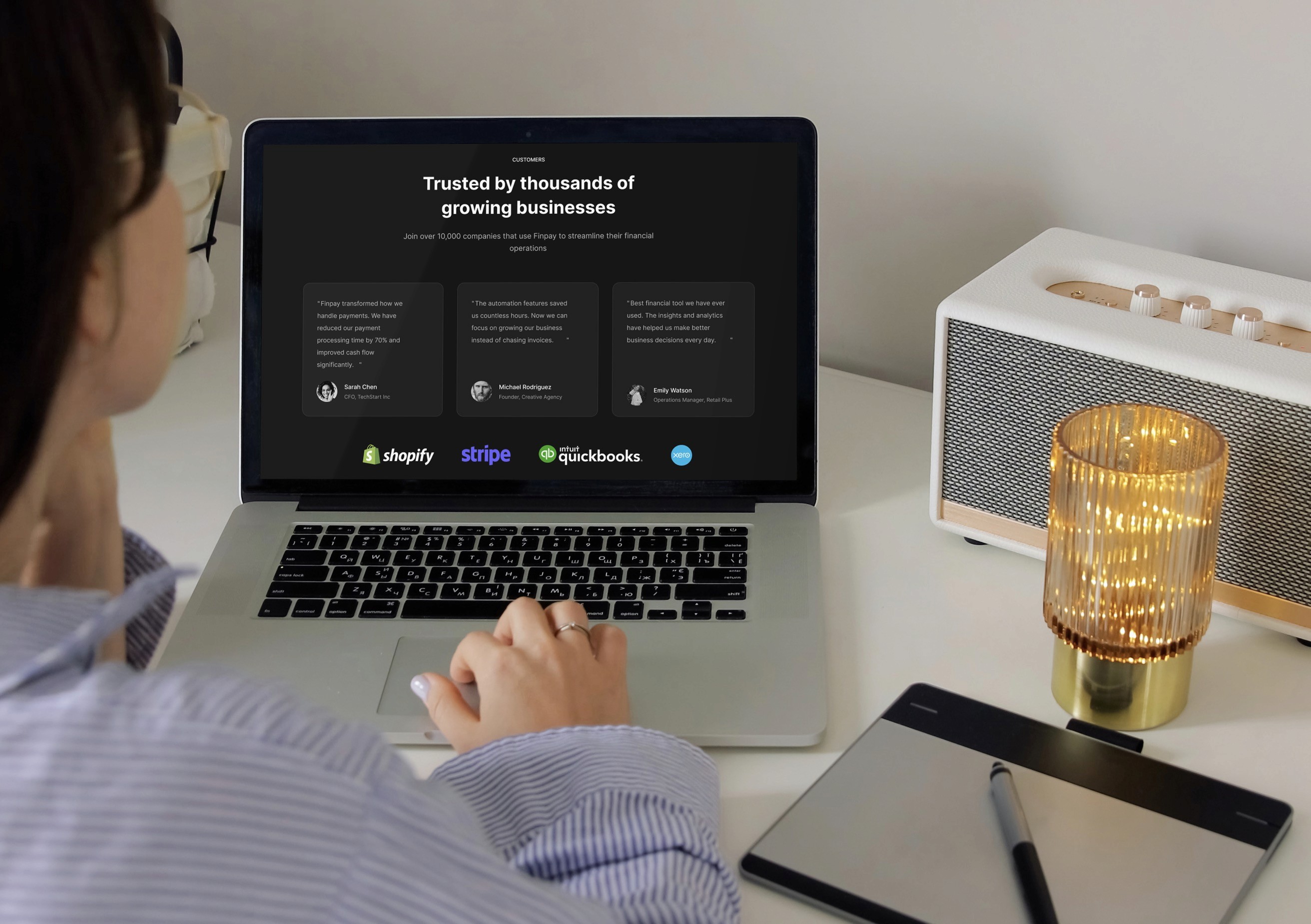 Designed Fynlo’s public-beta marketing site to build trust fast and drive qualified sign-ups with a frictionless email capture above the fold. Structured the page as a clear narrative: hero + product pillars, proof stack (testimonials + metrics), security signals (SOC2/2FA/encryption), transparent pricing, and a final CTA. Delivered a scalable component system (cards, pricing tiles, testimonials, email capture) optimized for scanning, clarity, and conversion.